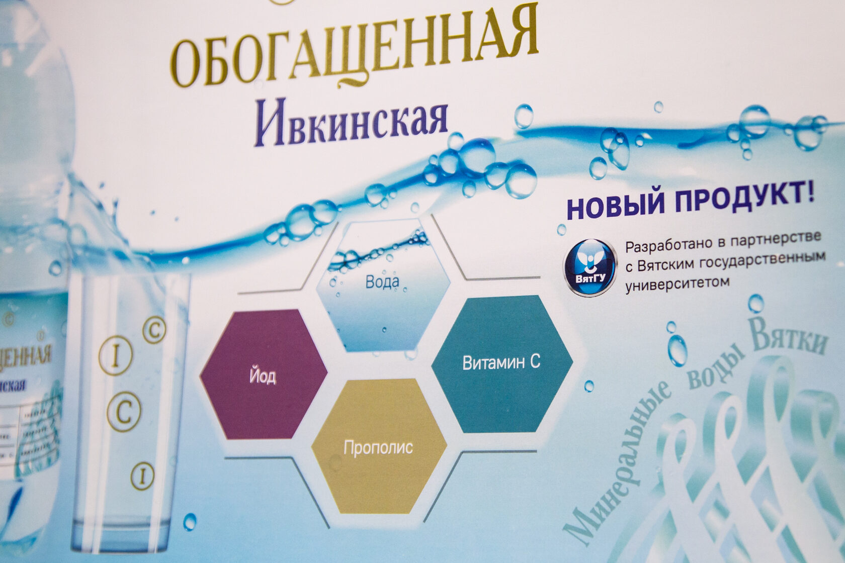 Энергия, здоровье, иммунитет – этим целям отвечает результат успешного сотрудничества вуза и бизнеса. Питьевая вода «Обогащенная Ивкинская» c логотипом ВятГУ на этикетке уже появилась на прилавках магазинов, вызвав интерес потребителей.