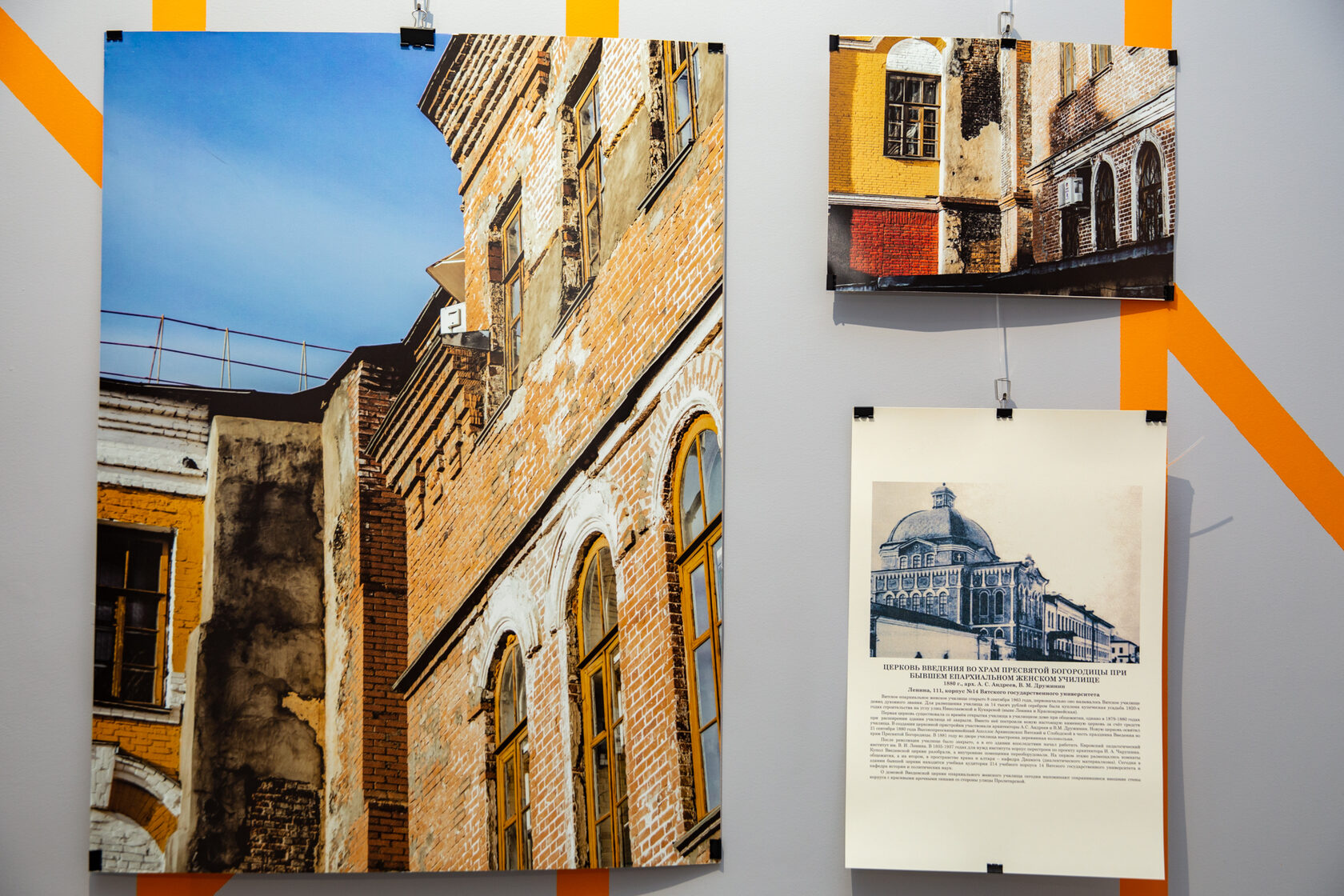 Хорошо ли вы знаете родной город? Большинство жителей Вятки, вероятно, ответит утвердительно, даже не подозревая, сколько поистине бесценных объектов ускользает от их взоров, прячась среди более современных «соседей». Именно им, «невидимкам» из прошлого, посвятила проект доцент кафедры культурологии, социологии и философии Светлана Дождевых, реализовав его вместе с фотографом Екатериной Новосёловой и дизайнером Еленой Атнагуловой. «Спрятавшиеся церкви Вятки» - так называется фотовыставка, повествующая о домовых церквях, возводимых когда-то при учебных, благотворительных, больничных и тюремных учреждениях. Только одна из них – Екатерининская – ныне снова является действующей. Прочие остаются вне поля особого внимания кировчан, не утрачивая при этом своей архитектурной и духовной значимости. Харизматичная Светлана Дождевых блестяще провела экскурсии по фотовыставке, ознакомив всех желающих с историей и современным состоянием запечатленных объектов.